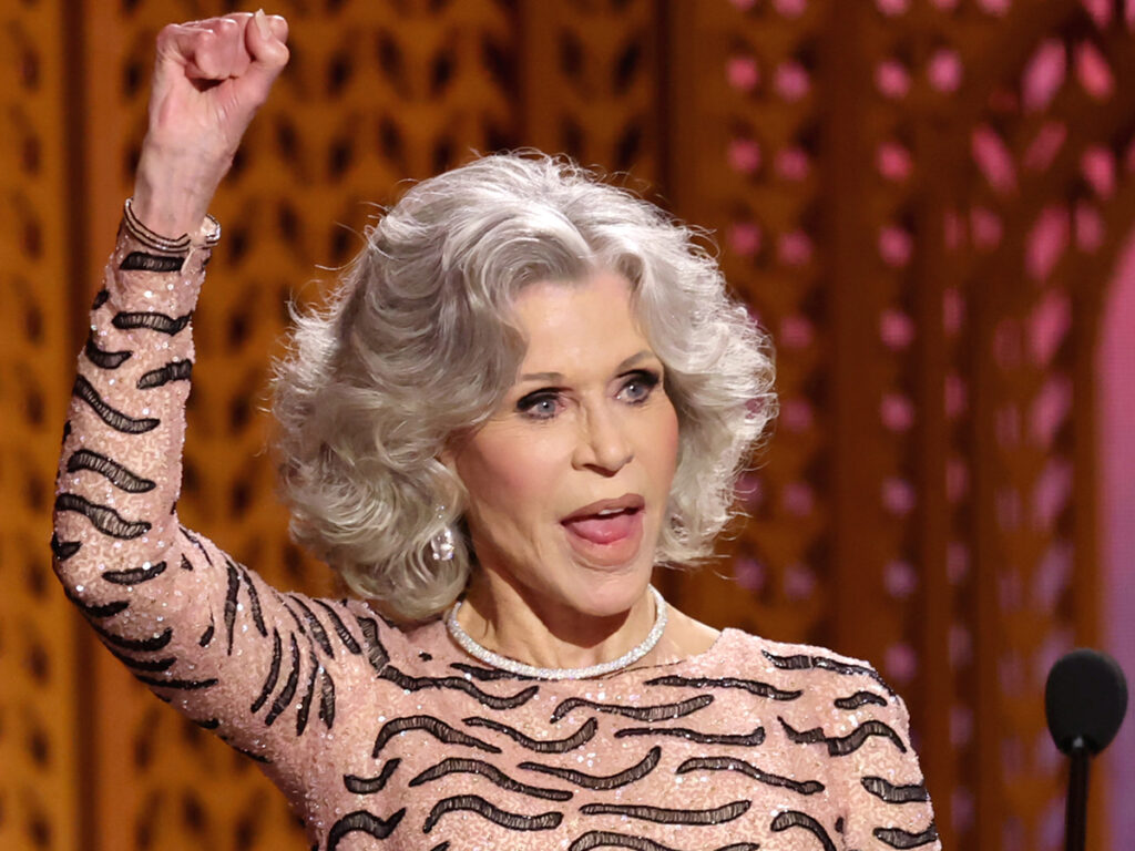 Sul palco dello Shrine Auditorium, Jane Fonda ha anche ripercorso la sua carriera da attrice, lunghissima e «totalmente non strategica». Cresciuta negli anni Quaranta e Cinquanta, «quando alle donne non era concesso di avere opinioni e arrabbiarsi», ha scelto la recitazione perché le dava la possibilità di interpretare donne arrabbiate e con pensieri propri, «il che non è da me», ha scherzato. Ha parlato di sé descrivendosi come una «late bloomer», una fioritura in ritardo. «Mi sono ritirata per 15 anni e sono tornata a 65, e non è usuale. Ho fatto uno dei miei film di maggior successo a 80 anni. E probabilmente a 90 anni farò le mie acrobazie in un film d'azione» ha spiegato.