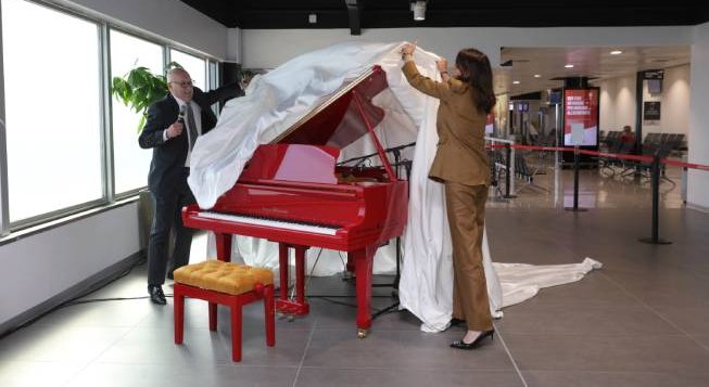 All’Aeroporto di Genova arriva Rosso Formula, il pianoforte donato dalla Fondazione Pallavicino