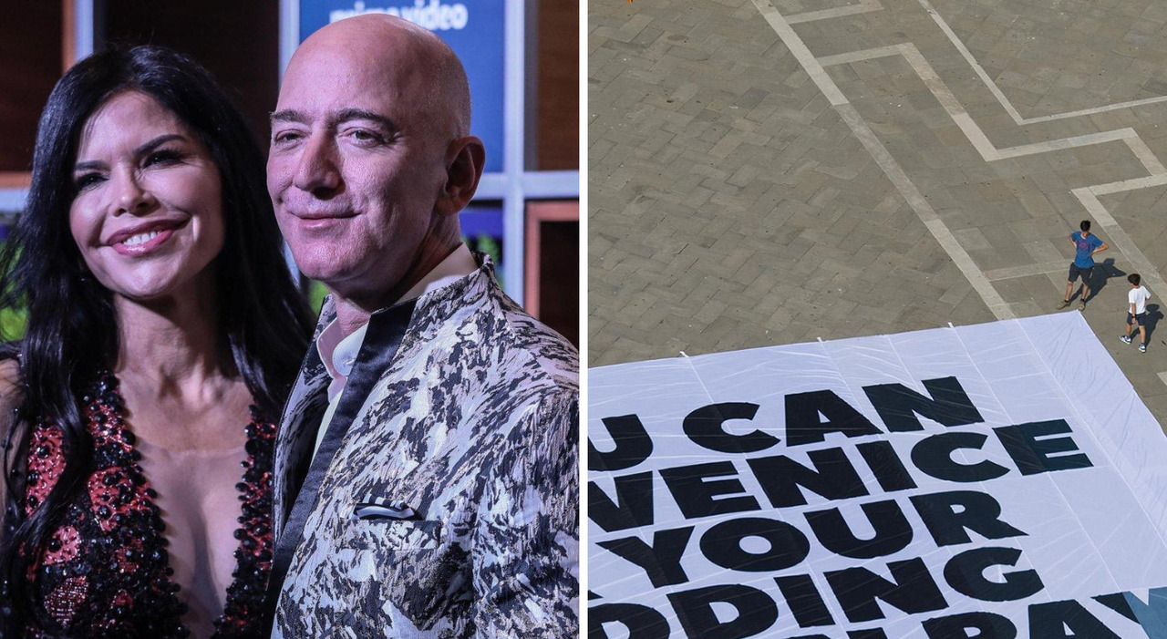 Conto alla rovescia per il matrimonio di Jeff Bezos e Lauren Sánchez: i riflettori si accenderanno domani 24 giugno a Venezia con tre giorni di festa. L'evento ha già scatenato le polemiche tra chi si sente lusingato dalla scelta di Bezos di festeggiare le nozze a Venezia e chi invece crede che non sia una città «in affitto». È di questa mattina il cartellone gigante srotolato dagli attivisti climatici in Piazza San Marco che recita: «If you can rent Venice for your wedding, you can pay more tax (Se puoi affittare Venezia per il tuo matrimonio, puoi pagare più tasse).