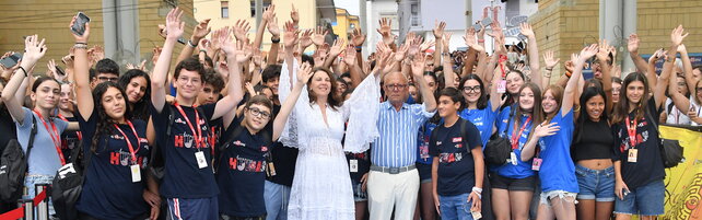L'edizione numero 55 del Giffoni Film Festival si chiude con 30mila presenze al giorno, quasi un miliardo di contatti raggiunti, oltre 900 milioni nel mondo. Lo ha riferito il fondatore Claudio Gubitosi, che durante la conferenza stampa di chiusura ha ufficialmente passato il testimone a suo figlio Jacopo, nuovo direttore generale, e a Luca Apolito, direttore artistico. "È il momento giusto - ha dichiarato - Il mio team è pronto. Vi lascio un'eredità fatta di amore, sacrificio, ascolto e poesia: senza poesia non si va lontano". Jacopo Gubitosi ha raccolto l'eredità: "Sapevamo sarebbe arrivato questo momento, ma non si è mai davvero pronti. Giffoni è un processo in continua evoluzione. Siamo una famiglia, ed è questo a renderci unici", ha affermato. Apolito ha parlato di Giffoni come di un colpo di fulmine: "Da 55 anni generazioni si raccontano qui. Non accettiamo critiche ai giovani: sono loro i veri testimoni del cambiamento". Commosso anche il presidente Pietro Rinaldi: "Da giurato a presidente: il mio legame con Giffoni dice tutto. È un luogo di cultura e identità, per migliaia di ragazzi e per un team straordinario". Caludio Gubitosi a suo figlio Jacopo