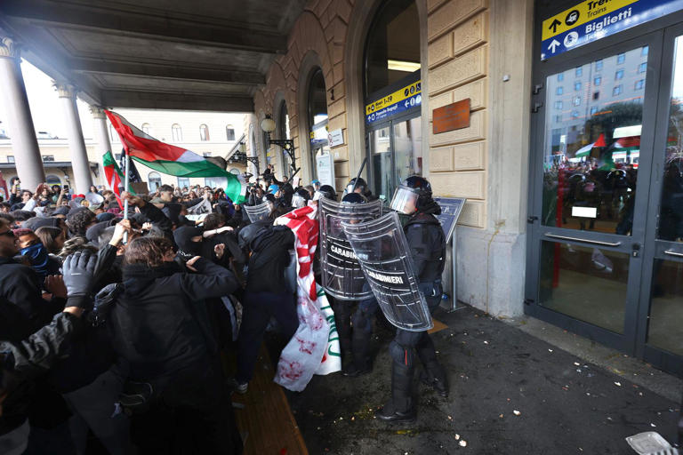 Circa 2.500 persone hanno manifestato anche a Torino, in segno di solidarietà alla Flotilla accendendo fumogeni davanti alla sede Rai prima di spostarsi sotto Palazzo Nuovo. Il corteo ha raggiunto la stazione di Porta Nuova, registrando dei momenti di tensione davanti all’ingresso principale. Qui gli agenti di polizia in assetto antisommossa hanno contenuto con qualche carica di alleggerimento i manifestanti che volevano entrare.