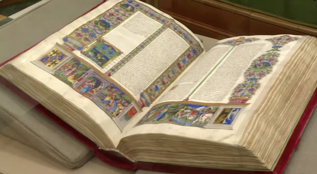 Leone XIV ha potuto ammirare da vicino l'opera realizzata tra il 1455 e il 1461 dal calligrafo Pietro Paolo Marone e dai miniatori Taddeo Crivelli e Franco dei Russi, praticamente una delle massime espressioni dell'arte della miniatura.