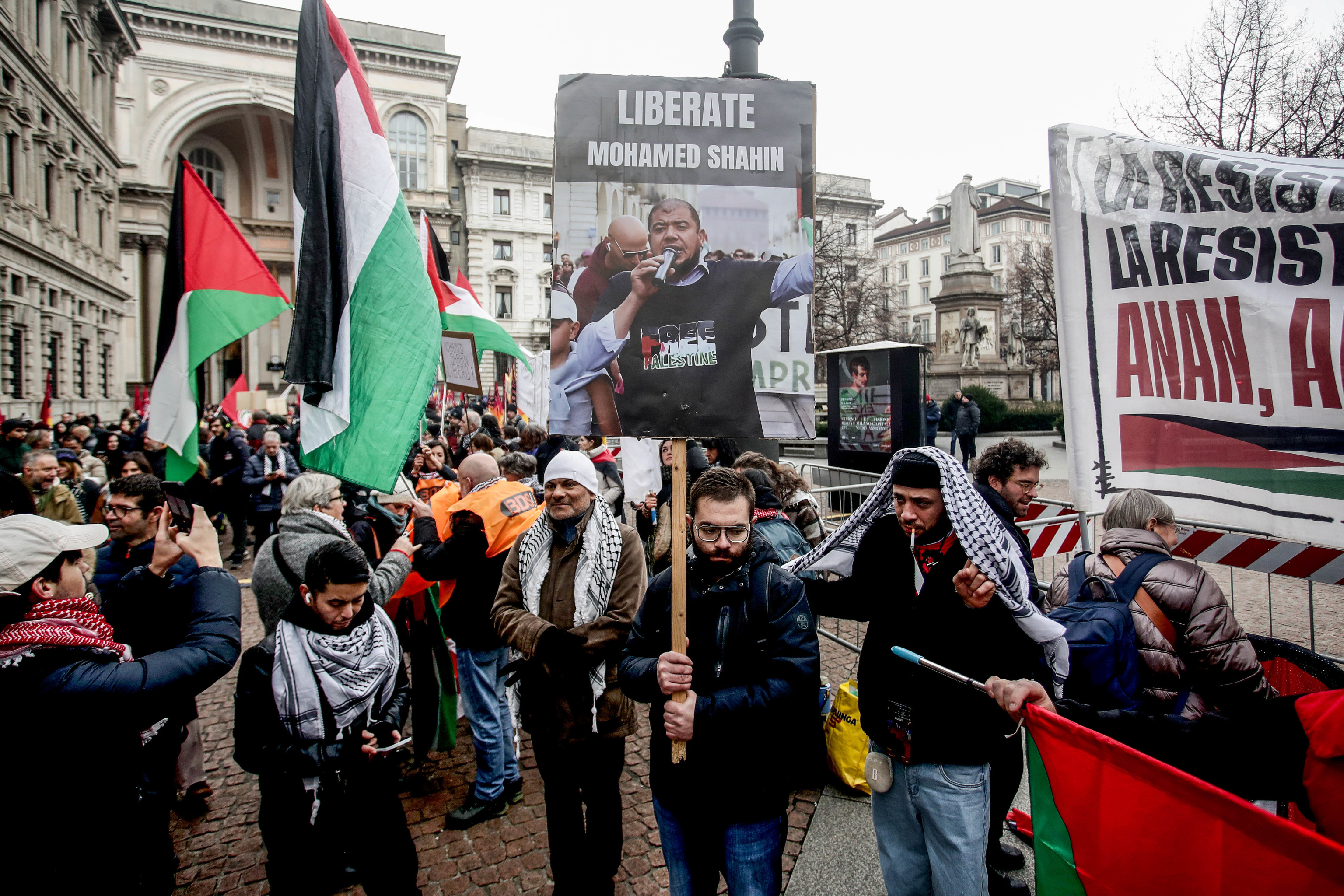 All'altoparlante, in collegamento telefonico, è intervenuto anche Mohammad Hannoun, presidente dell'associazione palestinesi d'Italia, che ha ricevuto un foglio di via di un anno da Milano. "Noi e per sempre siamo antisionisti, non antisemiti, e perseveremo. Vi dico di continuare con la vostra mobilitazione e i vostri cortei. Continueremo per denunciare Israele e coloro che lo sostengono per una Palestina libera". (ANSA).